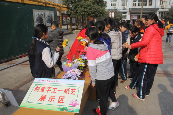 本学期校本课程共有27门同时进行,有30位老师承担着教学任务。2015年元旦前夕,学校对校本课程进行了成果展示,展示分成果展示和现场展示两种。学生社团奇葩绽放,弦动吉他协会、国学社协会、劲舞街舞协会、围棋社、篮球社、足球社、航模社、演讲社、我爱背英语社、动漫社、手工社、太极拳设、葫芦丝社以及算法与程序社等社团成果展竞相亮相,学校对二十余门丰富多彩的活动课进行了验收。创意手工布艺作品惟妙惟肖;广播站成员的朗诵声情并茂;啦啦操社的舞蹈动感十足; “航模社”的成员自制的小飞机在校园腾空而起; “胡芦丝”乐队的合奏声声入耳;“八式太极拳”打得像模像样;足球队队员威猛敏捷;生物模型制形象直观;围棋社的成员在棋桌上斗智斗勇;疯狂英语社的学生通过为圣诞老人画上胡须感受到中西方节日的不同;国学社的庆元旦猜谜语活动更是吸引了众多的眼球等等……通过验收,充分展示了学生的特长,也看到了学生的进步与成长。 多彩校本课程的开设,让学生们获得了参与社会生活所必需的多种知识与技能,补充了学校课本知识的欠缺,增添了人生阅历与经验。同时也极大地促进了教师的专业成长,进一步丰富了学校的办学内涵。