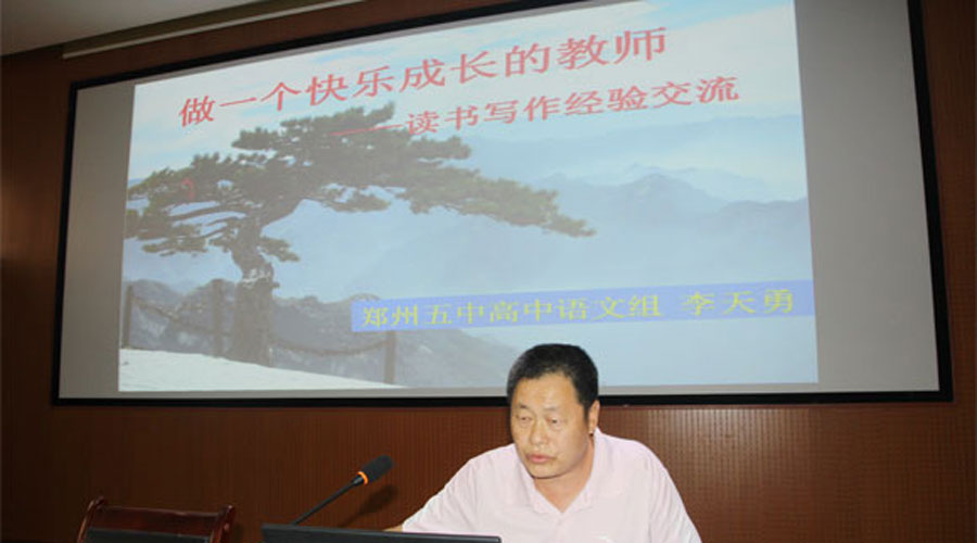 读书是教师成长的有效途径,教师的精神成长需要书籍的滋养,教师的专业成长需要专著的引领。10月8日下午,郑州五中全体老师齐聚报告厅,在轻松和谐的氛围中举办了 “郑州五中第六届教师读书报告会”。会议由教学副校长王勇主持。