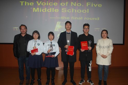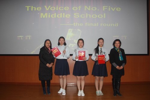 “郑州五中好声音”由高中英语组发起、校团委学生社团组织的每年举办一次的英语歌曲学生表演活动,一般安排在当年的圣诞节来临之际。高中英语组同仁共同进一步完善了《“寻找五中好声音”参赛细则》,并通过海报宣传发动,寻找五中好声音苗子,经过一个月的海选预赛、年级复赛等精心策划和细心准备,顺利结束。参与评委的老师还有郭雪玲、李峥域、尹少修、谷冰冰、李海江、孟华、李靖等英语老师和高三学生朱正担任评委。