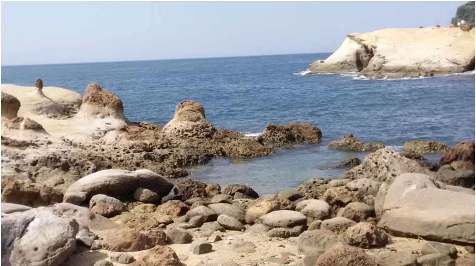 7.2 野柳地质公园是我在台湾经历自然风景的最后一站。这是一个海角,是由大屯山山脉余脉延伸入海形成的。经过多年的海浪侵蚀和地壳活动,形成了包括“女王头”“俏皮公主”等等奇特海蚀景观。站在粗糙的海岸边眺望无边的大海,身边是各式各样的奇岩怪石,海风的咸腥与岩石的尘土味混合。每一次海浪拍打岩石都会产生呜呜的声音。我们还观察到了海胆和菊石的化石。我与韩一帆还看到了一只工作人员抓上来的小寄居蟹,十分可爱。