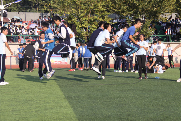 学校为了最大限度的让更多的同学参与运动会,除了跳远、跳高、长跑等常规项目外,组织了更多的集体项目,诸如30乘40迎面接力、班级集体跳绳、滚雪球等诸多拓展项目。在为期两天的比赛中,全校共1520多名运动员将在42个项目展开激烈角逐。各班准备充分,相互鼓劲,校园弥漫着友谊竞赛的浓厚氛围。